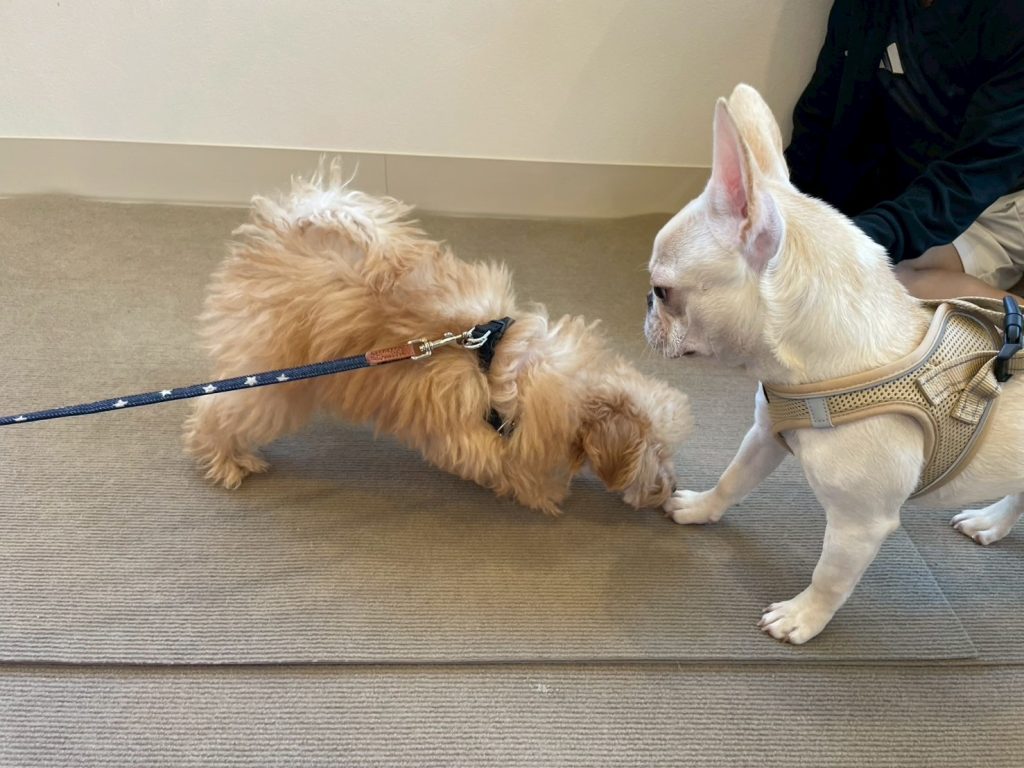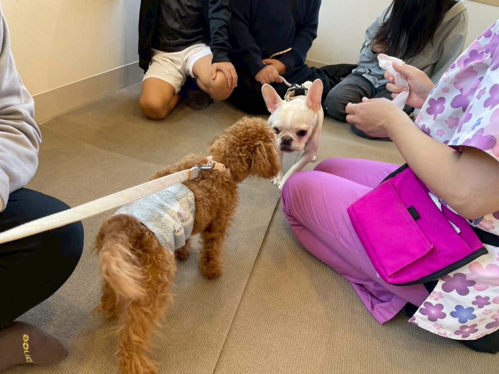今回参加してくれたのはフレブルのビビちゃん(5ヶ月)、トイプードルのロンちゃん(5ヶ月)、トイプードルのムギちゃん(3ヶ月)です。