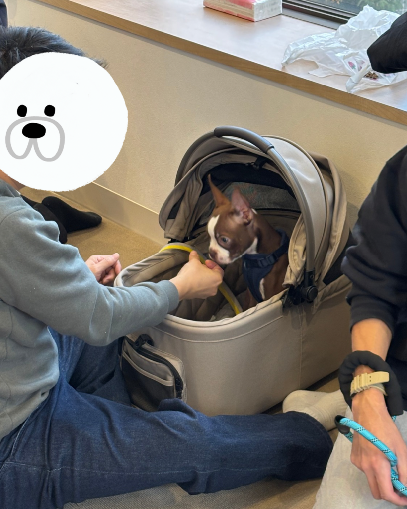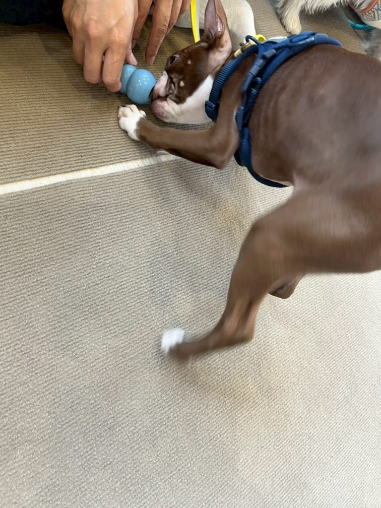今回参加してくれたマロ君は、第1回目に参加してくれたボストンテリアのウタくんと同じ家の新しい子犬ちゃんでした。2頭続けて参加していただき、大変嬉しかったです。