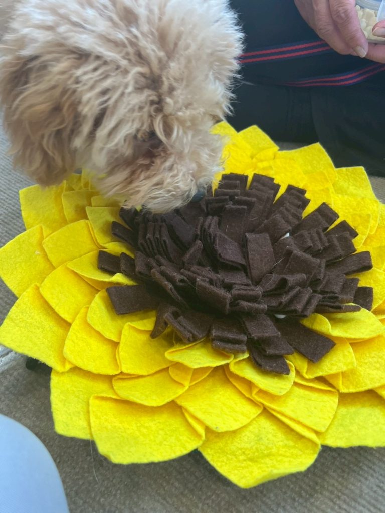 花ちゃんはコングよりノーズワークマットの方に興味津々でした。