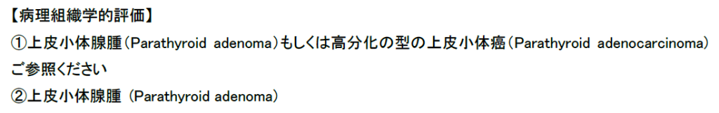 イオン化カルシウムとパラソルモン(PTH)の値は私がこれまで見たことがないぐらい高値でした。この結果から高カルシウム血症の原因は、上皮小体由来のものと考えました。