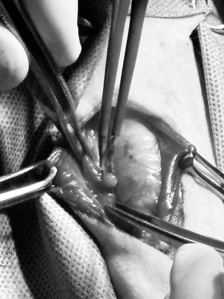 最初は、オーナー様の希望で利尿剤やステロイド、静脈点滴などの内科治療を実施しましたが、どれも治療反応は乏しかったです。食欲低下の改善も認められず、状態も落ちてきたため、上皮小体の腫瘤を外科的に摘出することとなりました。